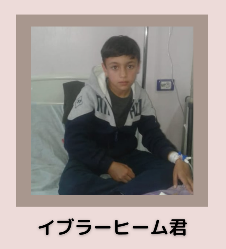 イブラーヒーム君はサッカーが大好きで、スペインのバルセロナの大ファンです。またひとりっ子であるため、紛争下で混乱したシリアにおいて、お父さんとお母さんのかけがえのない希望でもあります。またいつかグラウンドで元気にサッカーをできるように日本から私たちが応援をします。