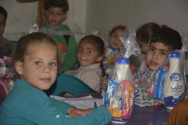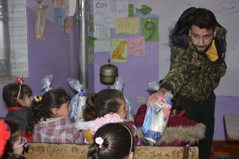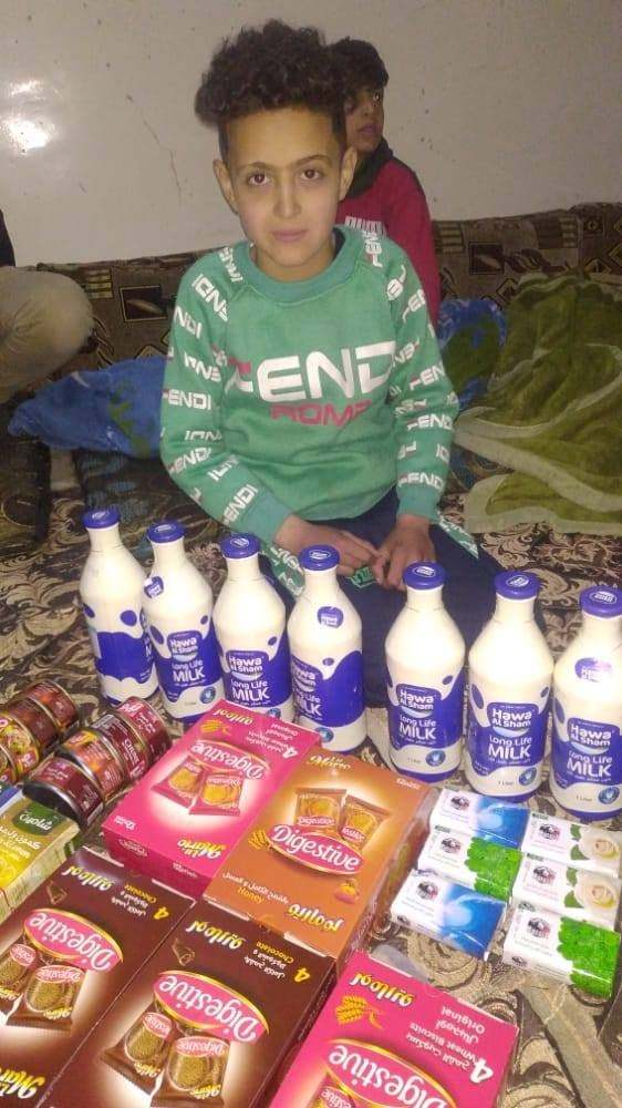 こちらは、ダラアの青年。内戦で左腕を失っています。ヨルダンにいたときに支援していたので、何かと頼みやすく、500ドルを送り、近くの小学校の子どもたちに牛乳やビスケットを配りました。
