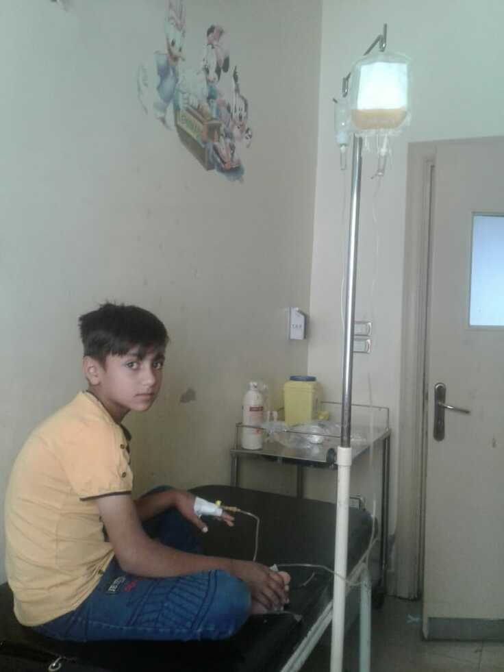 もう一人の患者のイブラーヒーム君を紹介します。現在9歳。アレッポからは、北に40kmほど離れた村に住んでいます。