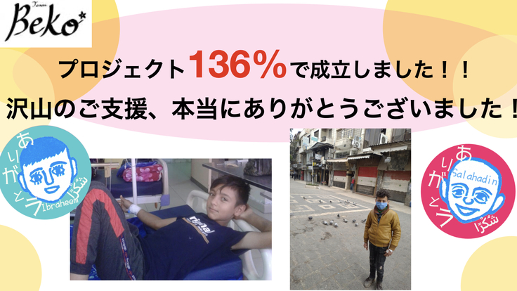 皆さま、最後までお力添えくださり本当にありがとうございました。皆さまからいただいたご応援を胸に、イブラヒームくん、サラーフくんの一刻も早い快復を願いながら、TeamBeko一同精一杯活動を頑張ってまいります。