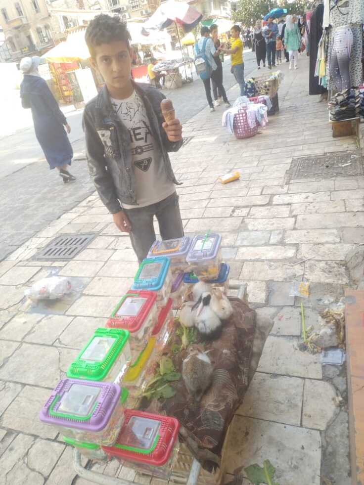 クラウドファンディングで集めたお金に関しては、現在集計しており間もなく会計報告をいたしますが、この調子でいくと暫く支援は続けなければいけないと思っています。そこで 、年賀状を作成して収益を支援に回すことにいたしました。サラーハ君はうさぎと亀が大好きでダマスカスに行った時は路傍で売られているうさぎと亀をいつも眺めています。