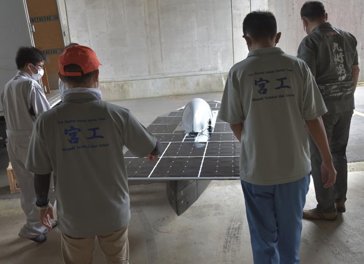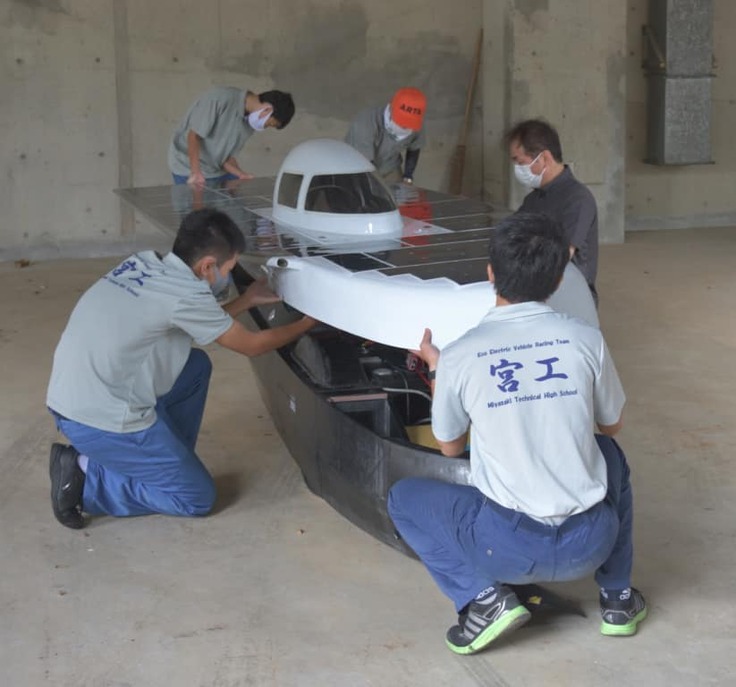 併せてソーラーカー車体のテスト走行とドライバーの練習走行で最後の調整に入りました。