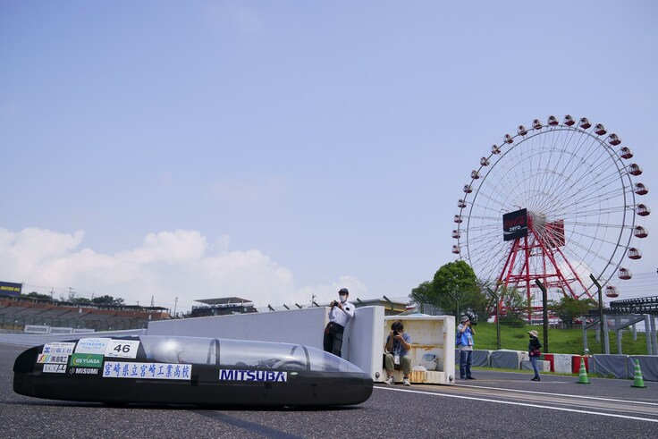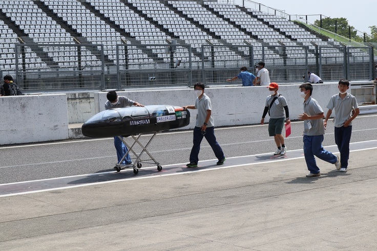 この競技は単3充電池40本を搭載したエコランマシンで鈴鹿サーキット・フルコース1周をタイムアタック。3回走行し合計のタイムで順位を競います。