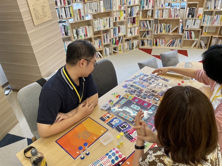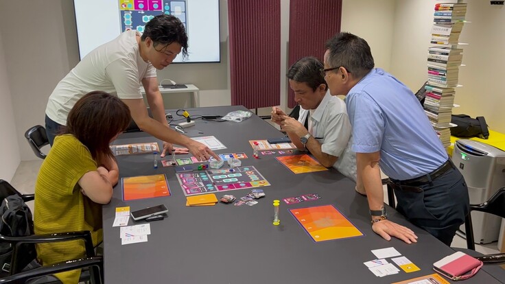 主に研修講師や教育業界に従事されていらっしゃる方々に向けてTEAM CLIPの体験会を実施しました。ボードゲームをプレイしたことのない方ばかりで、始まる前は不安を感じている方もいらっしゃいましたが、いざゲームが始まれば抵抗感なく楽しんでいただけました。「どうやったらもっとチームでパフォーマンスを上げれたのか」を熱く議論されており、ゲーム研修の醍醐味を経験いただけた時間となりました。
