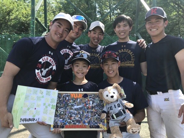最後は部員全員とハイタッチをし、終始笑顔だった勇志くん。慶應義塾体育会野球部は、入院中も継続的に勇志くんをサポートしていきます。勇志くんは秋頃に慶應義塾体育会野球部に復帰予定です。