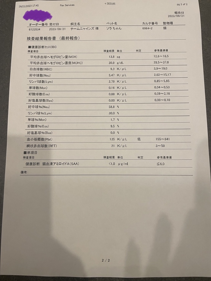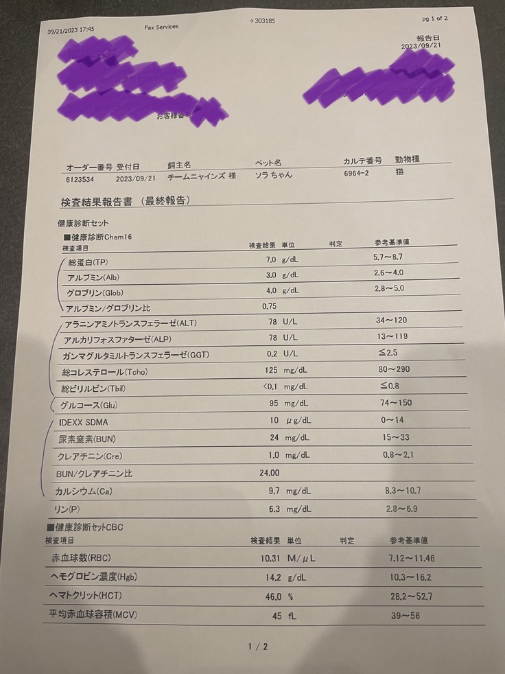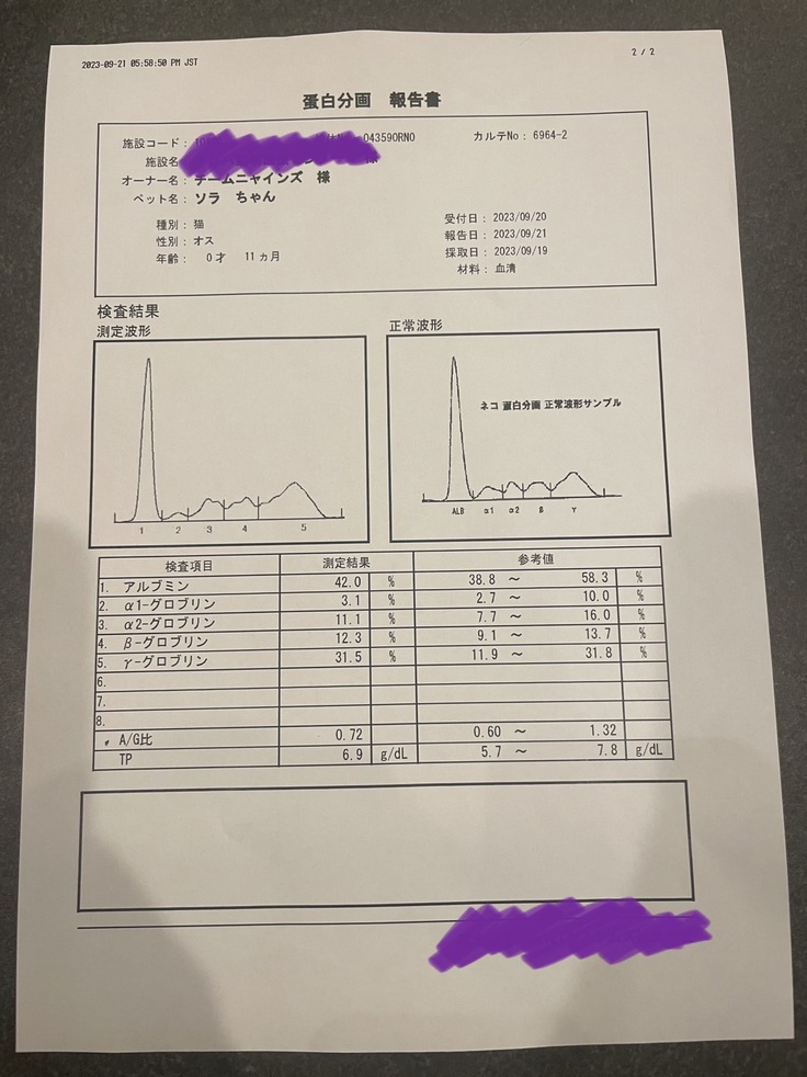 血液検査、蛋白分画ともに正常値に戻っていました✨
