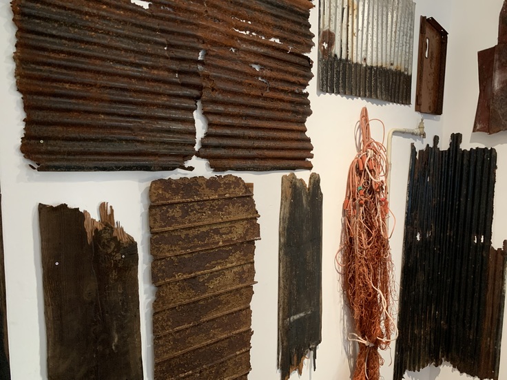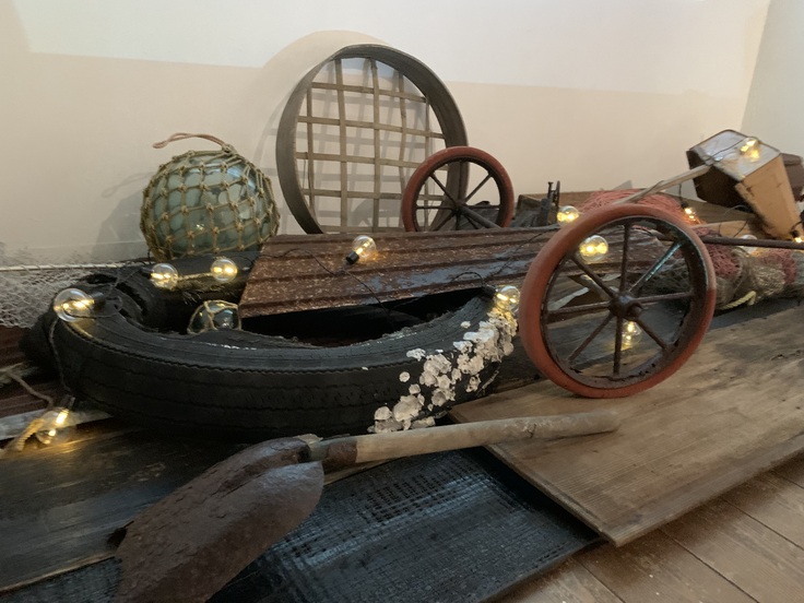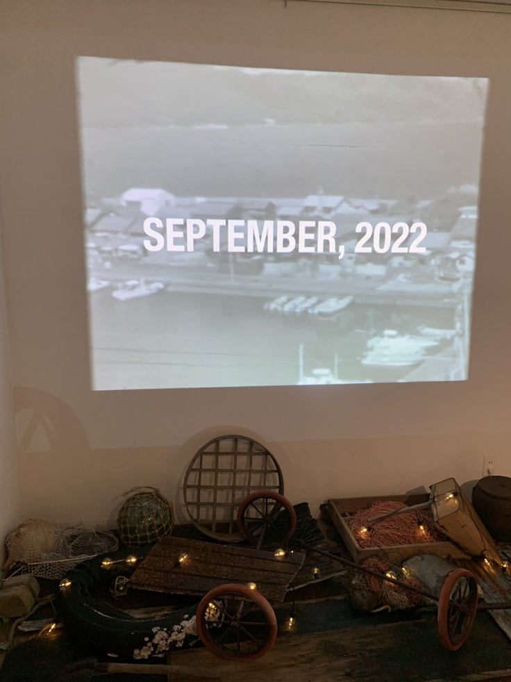 なかなか素晴らしい作品ですので、お近くお出での際はぜひお立ち寄りください。他に、映像作家の元吉烈さんによるドキュメンタリー映像や、出羽島の方にいただいた鉄屑なども展示しています。