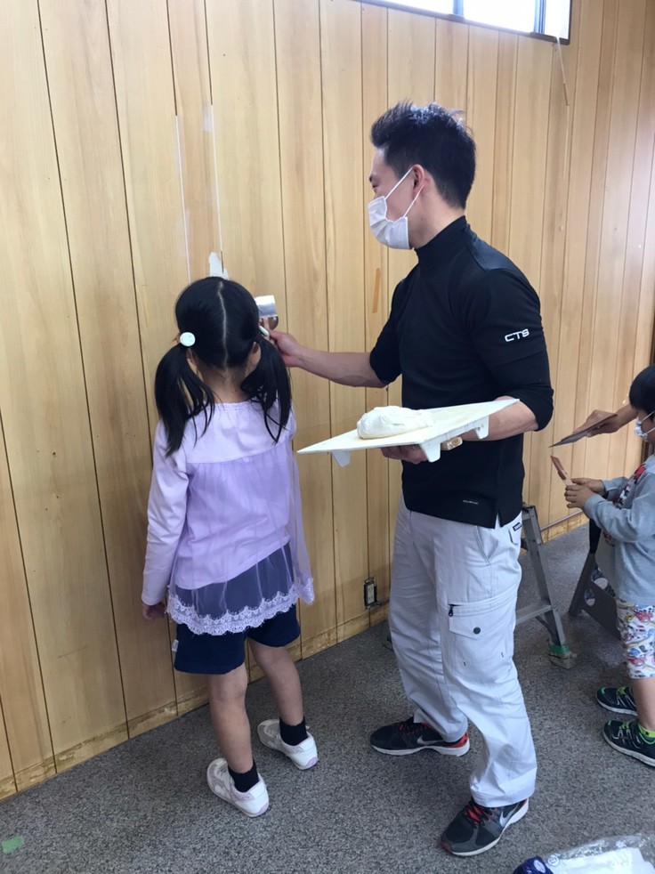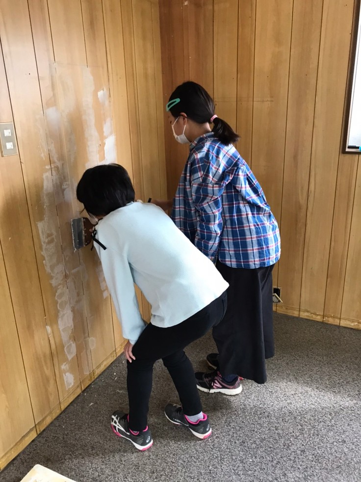 スイッチ類やコンセントカバーなども取り外し、ていねいにはがしていきます。子どもたちも立派な戦力です!