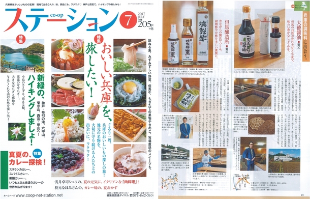 本日発売の雑誌 ステーション7月号「おいしい兵庫を、旅したい!」で当社の「こうのとり醤油」と「ほたるいか魚醤」が掲載されました。