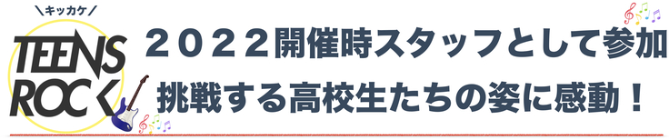 2022年東大阪市で行われたTEENS ROCK in HIGASHIOSAKA(近畿地区大会)にスタッフとして参加し、高校生が決勝へ向けて本気で挑戦する姿を見て、感動しました。
