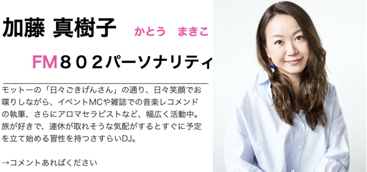 ●FM802加藤真樹子さん、有名シークレットゲストをお呼びし、イベントを盛り上げます!