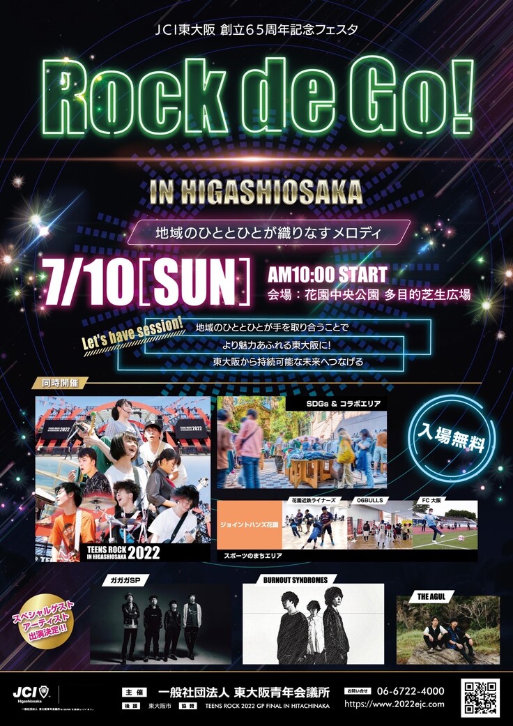 全国高校生アマチュアバンド選手権「TEENS ROCK 」は2022年度初の全国11ヶ所の地区大会が開催され、茨城県ひたちなか市で「TEENS ROCK 2022 GP FINAL IN HITACHINAKA」が開催されました。この事業は出場バンドの高校生はもちろん地域の高校生が運営から当日の司会進行まで行い、また市の行政の皆さまと青年会議所が共に活動して、高校生の夢を応援する事業となっております。実行委員会メンバーはボランティアで集まっており、毎年多くの企業、個人の皆さまにこの事業賛同して頂きご協賛を頂いております。近畿地区東大阪大会でも全国の高校生の夢を応援して頂ける多くのサポーターの皆さまを募集しております。応援よろしくお願い致します。