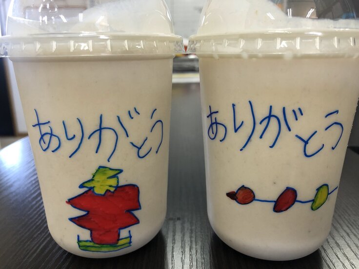 空いた時間に「ありがとう」の文字や個性あふれるイラストを手書きして皆様に喜んでいただいております。