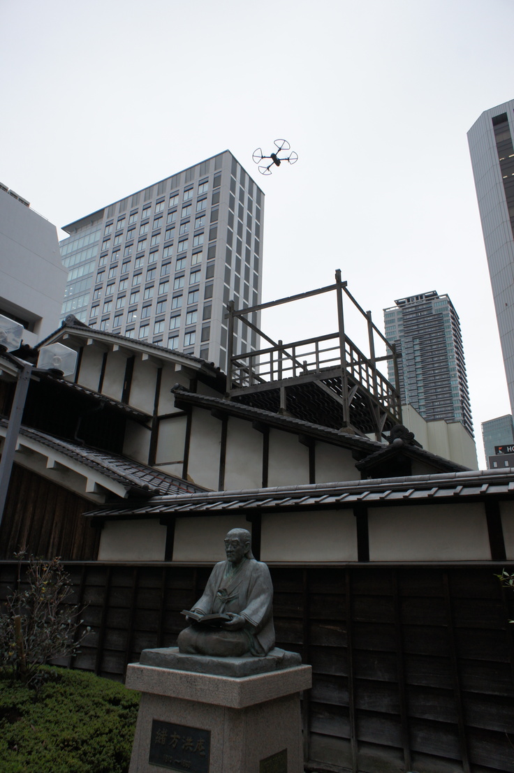 高所部・屋根部ももちろん対象で、周辺の建物にお邪魔したり、ドローンによっても撮影を行いました。適塾とドローンの取り合わせは、なかなかシュールでした。