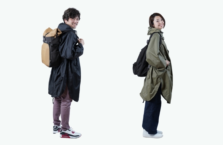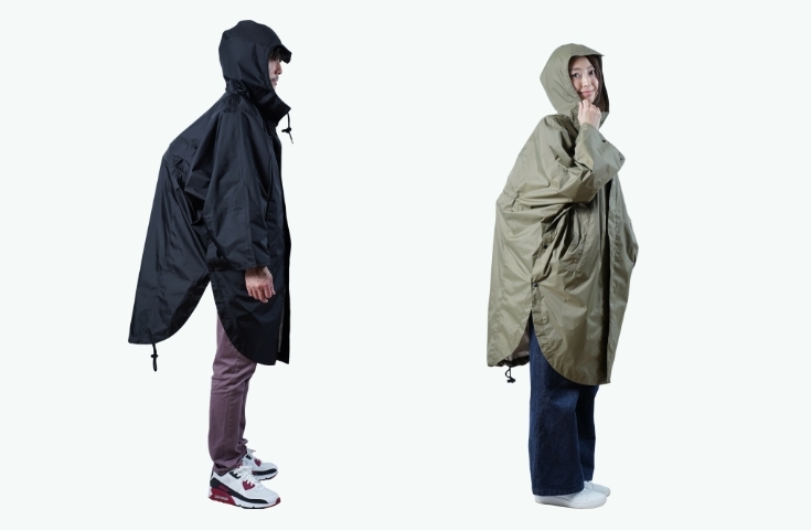 ロング丈+フード付きなので、リュックを背負っていてもしっかりとカバー。