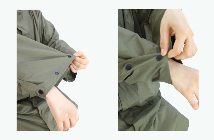 袖部分のスナップボタンによって、袖口のシルエット調整が可能です。