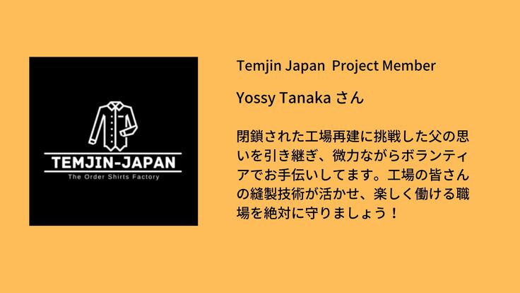 Temjin-Japanへの認知度を上げる、工場の現状を知ってもらう、ファクトリーブランディング、コンセプト検討、サンプルの作成に必要な資金を集める