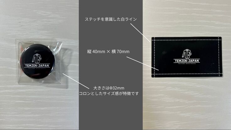 Temjin-Japanのロゴ入りステッカーと缶バッジです!
