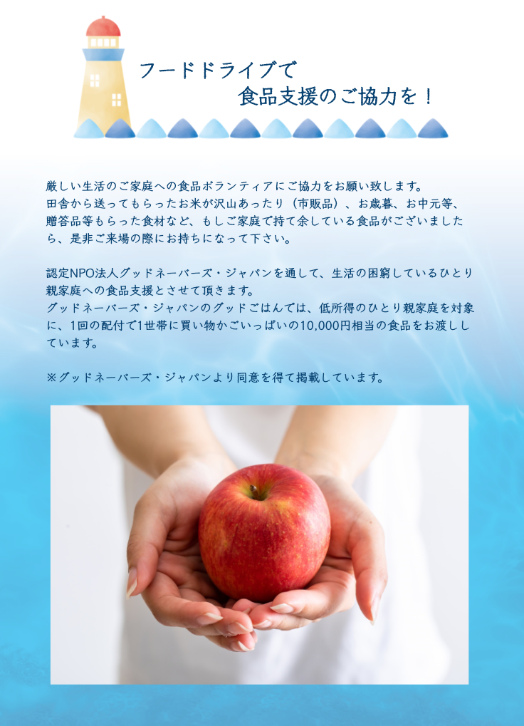 ・生鮮食品など常温で保管できない食品、酒類、サプリメントなどの子どもが飲食出来ない食品は受け付けておりません。