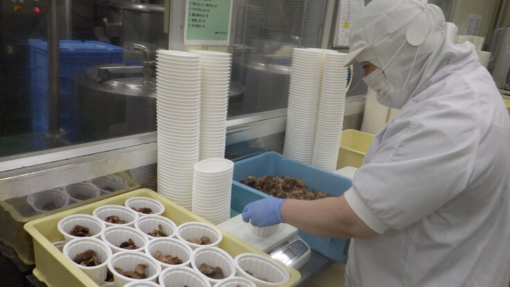 お肉は形が崩れないように、ひとつひとつ手作業で入れていきます。