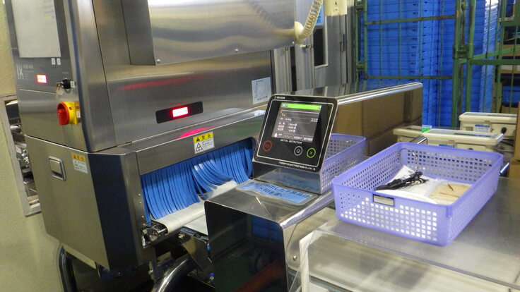 最終的段階はX線検査と、金属探知機によるチェックです。