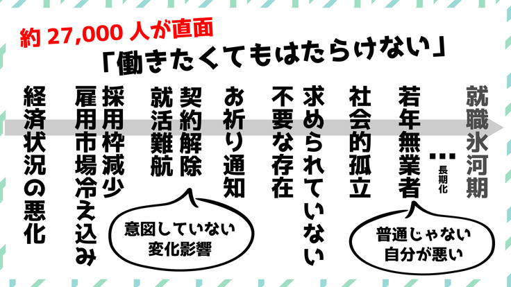 育て上げネットは、「意図しないつまずき」によって社会から孤立する若者をみてきました。このまま社会から放置されれば、第2、第3の就職氷河期が生まれることを危惧しています。