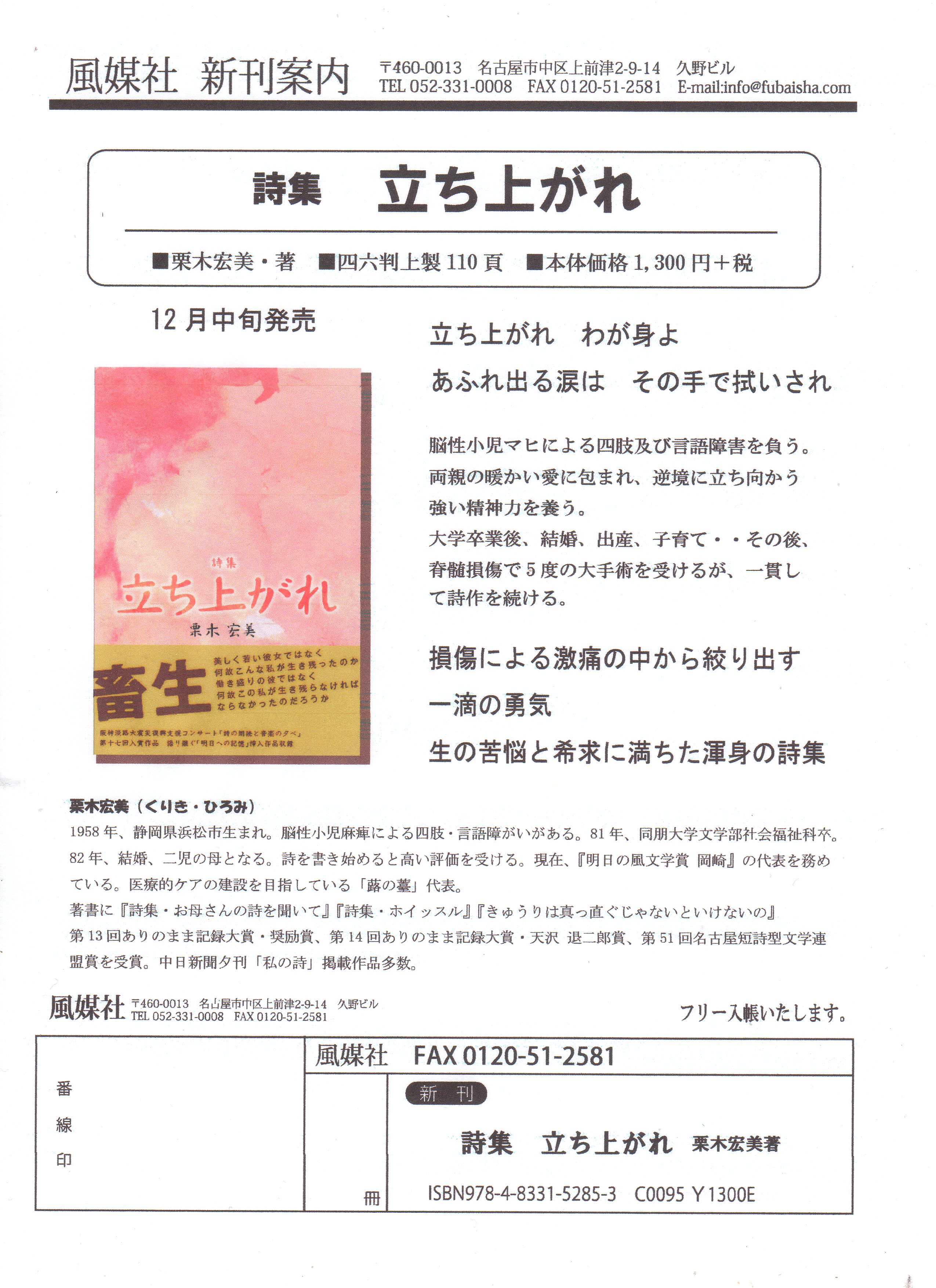 「詩集 立ち上がれ」は12月18日に私のところへ到着予定です。