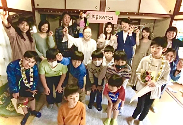 てらこやでの卒業式には いつもサポートしてくださっている先生方やお母さん達と