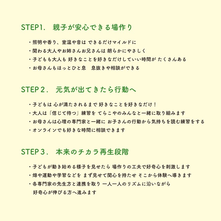 そこで私たちは、お母さんのこころの段階的サポートにも力を注いでいます。