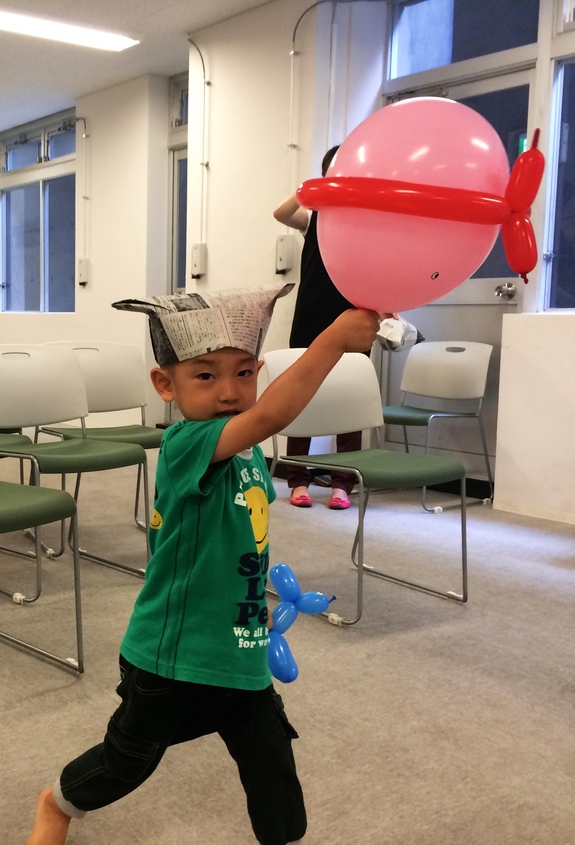 その後のバルーン・アート、新聞紙で作る変型帽子など、ワクワク体験を過ごしました。