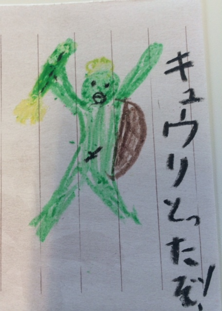 子どもたちが「かっぱの寺子屋」の応援のため、河童の絵をかいてくれました。