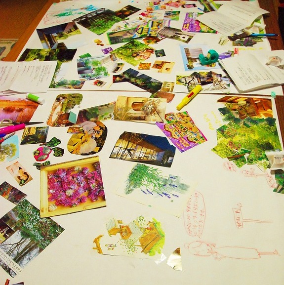 できたコラージュは「野原のような緑」「ツリーハウス」「ハーブ」など、おなじシンボルがいろんなところに出現していました。