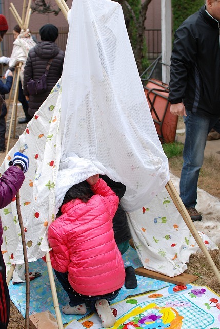子供も大人も童心に帰って、つくったり、おうちごっこをしたりしました。