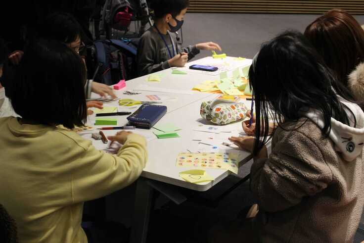 ゲームの作り方についての簡単な説明の後に、グループでのアイデア出しを経て、それぞれの参加者が思い思いに自分の作りたいゲームを形にします。始めはアイデアがなかなか出てこず、苦戦する子どもたちもいましたが、一度考えが生まれると、ペンやハサミを手に取り、集中してゲーム作りに向き合っていました。最後には自分の作ったゲームを発表します。オリジナリティあふれるカードゲームやボードゲームが多く見られ、楽しい時間になりました!