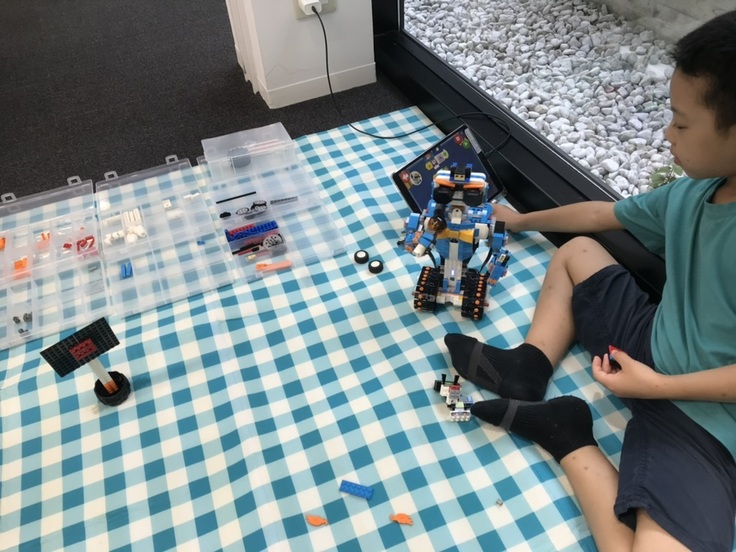 中には、ブロックを組み立ててロボットを作り、それをプログラミングで動かしている子もいます。平日の学びの場には主に自転車や徒歩で会場にアクセスできる方が参加されているのに対し、日曜日の学びの場には京都だけでなく大阪や滋賀から参加されているのも特徴です。