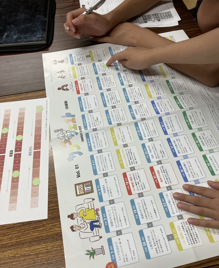 先日の学びの場での会話の中で、こんなゲームがあると知った複数名の子どもたちが「やってみたい!」と言ってくれたので、それならということで企画しました。2週連続で実施する予定で、1週目はゲームの趣旨・ルール説明を行った上で妊娠期の前半をプレイしてもらいました。