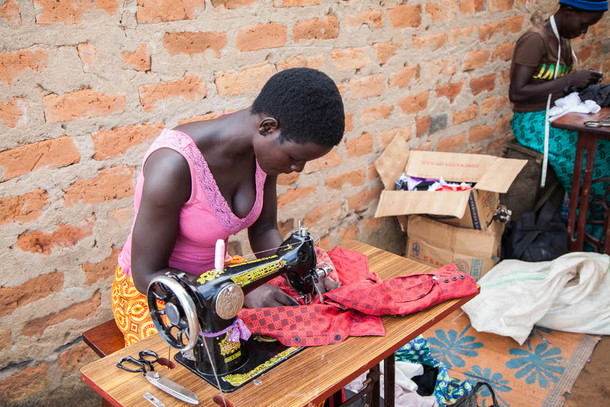 (写真:洋裁の職業技術訓練を受けている女性の様子)