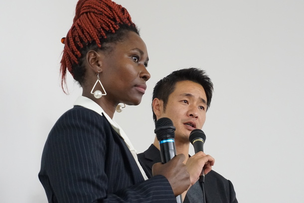 (過去の講演会の様子。写真左は、アフリカ事業コーディネーターのトシャ・マギー。)