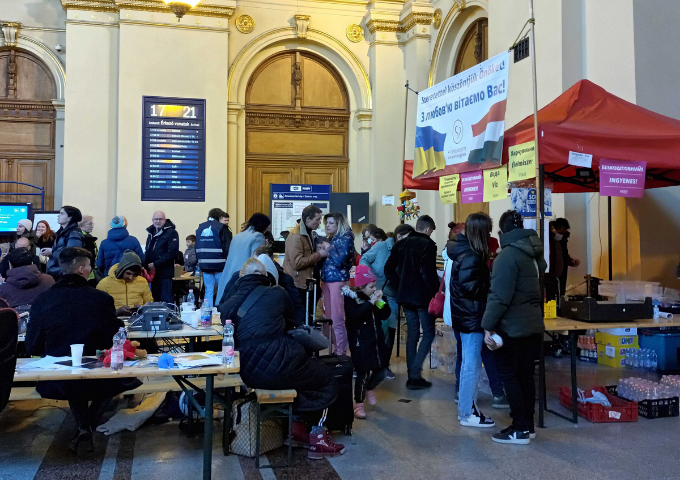 この日の朝は、50~100人程度の難民たちが待機していた。あたたかい食事や住居の案内、フリーWi-Fiなどが提供されていた。視察後、ロシアの侵攻が始まってすぐ支援に入ったというハンガリー国内の支援団体 “Bike Maffia Budapest” から情報収集。