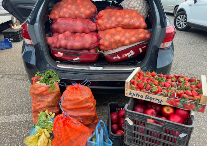 パン、じゃがいも、アンティチョーク、ココア、パスタ、にんじん、玉ねぎ、ジュース、石鹸、トイレットペーパー、生理用品、子ども用歯ブラシ、歯磨き粉、ガスボンベ