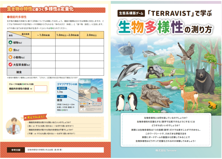 本日は、「TERRAVIST」のプレイを通じて、生物多様性の定義、測定の仕方などが学べるワークシート開発のお知らせです。