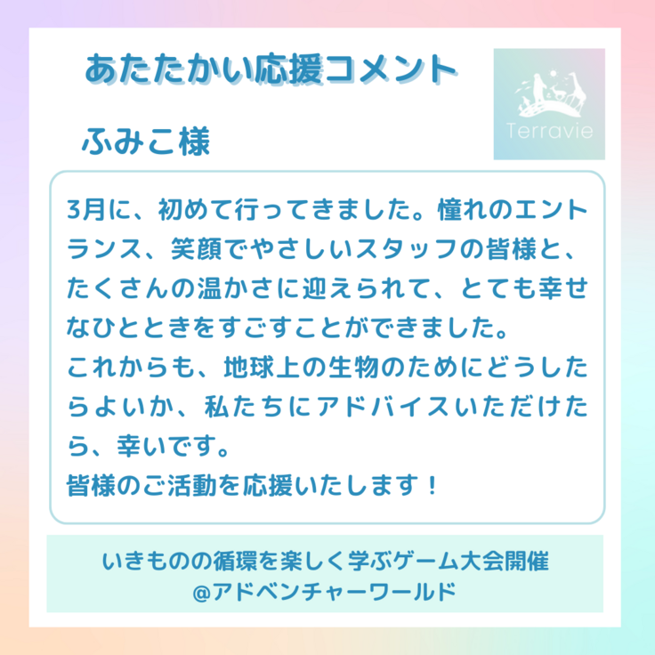 いつも私たちの活動を応援してくださり、ありがとうございます。