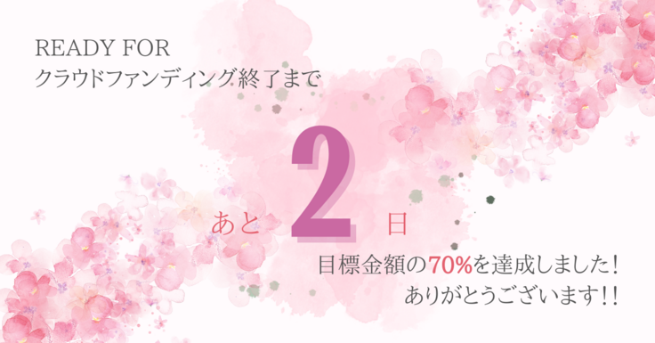 プロジェクト終了まであと2日! 〜目標金額の70%を超えました!〜