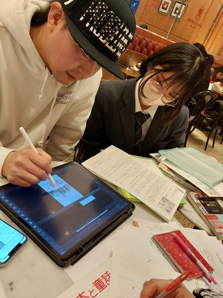 2022年11月18日、二人は初めて出会ました。五十嵐さんは樋口さんの構想にしっかりと耳を傾けながら構図を見出していきます。絵本制作チームがこの日、誕生したのです。