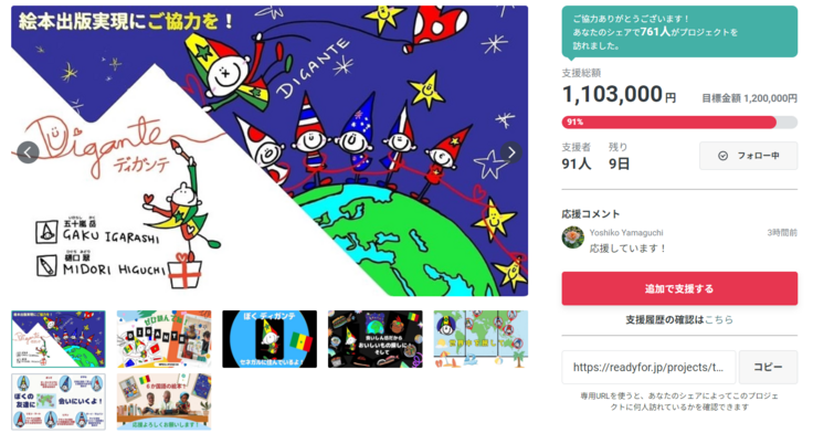 現在91名の皆様にプロジェクトへのご賛同をいただいております。