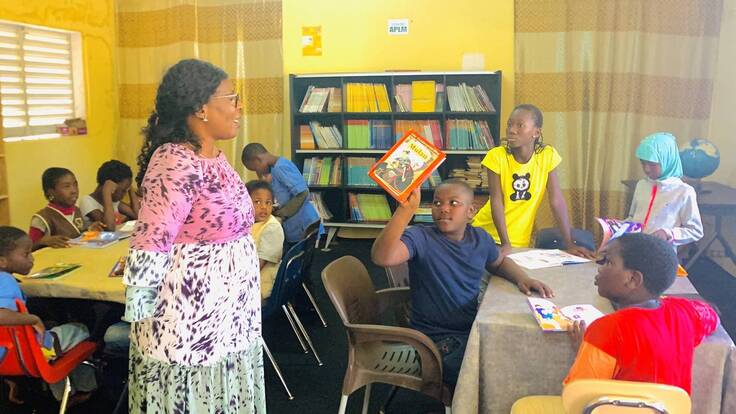 ナフィサトゥニャン小学校では、図書の貸し出しや読み聞かせを、