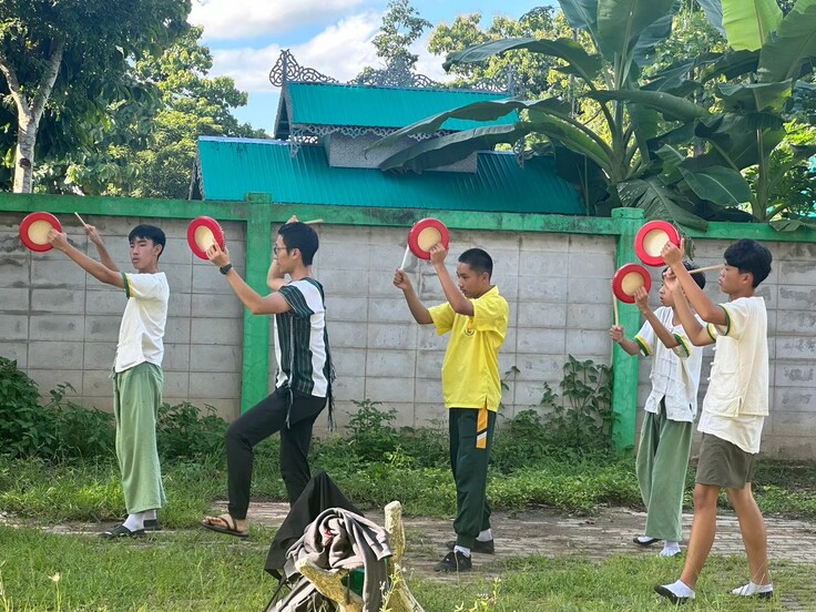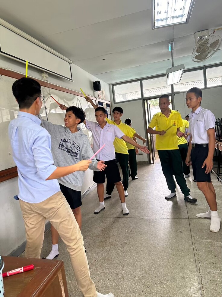 タイ北部メーサリアンのボリパット学校での高校生にエイサー指導がはじまりました。