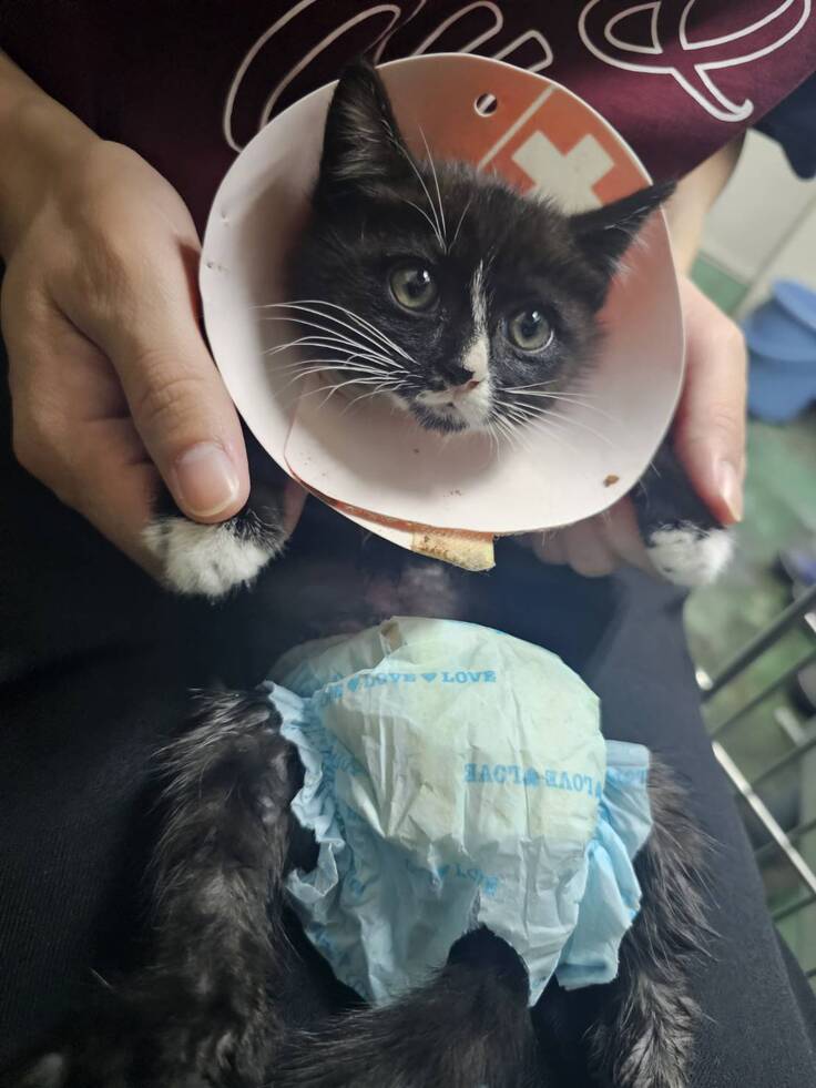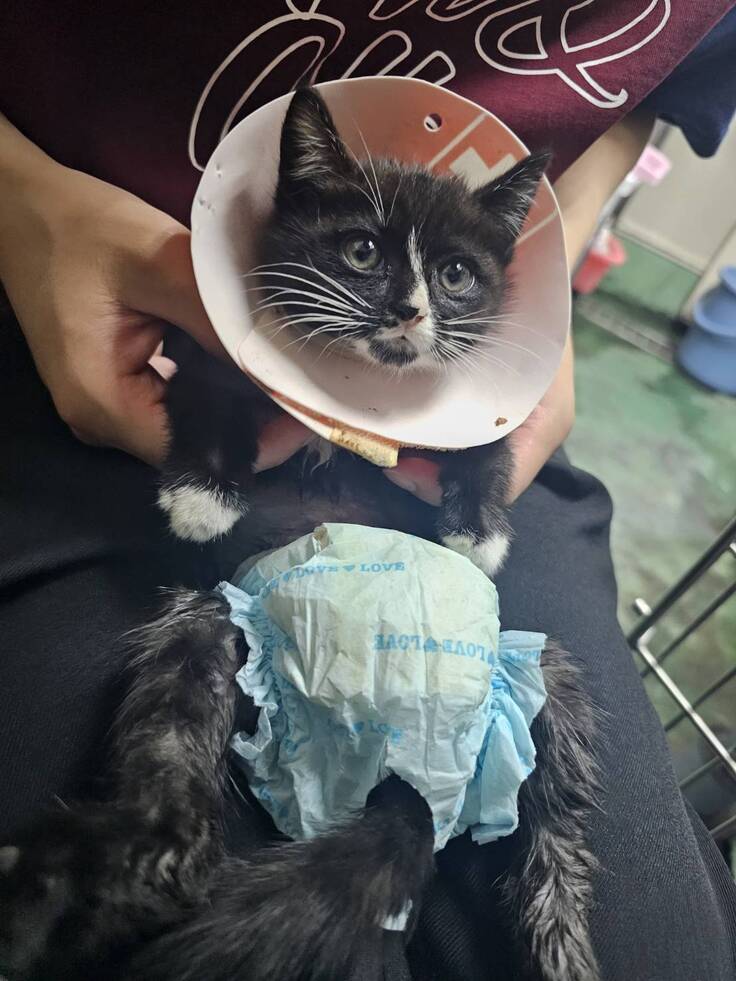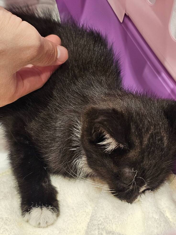道路でバタバタしているところを拾われ、病院に連れて行かれた生後2ヶ月ほどの子猫きゅうちゃん。
