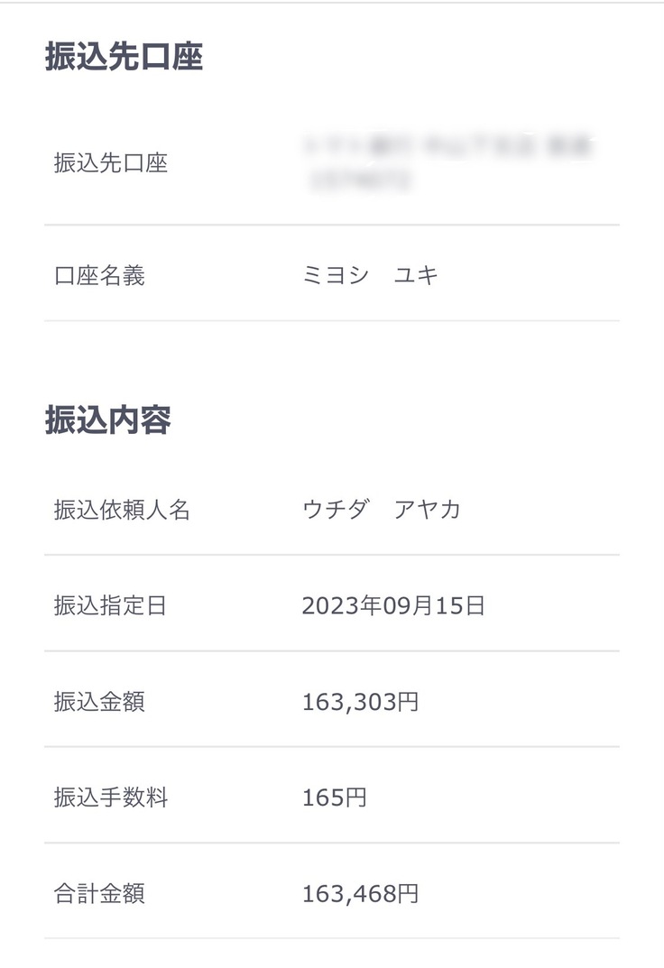 振込手数料は差し引いてくださいとの