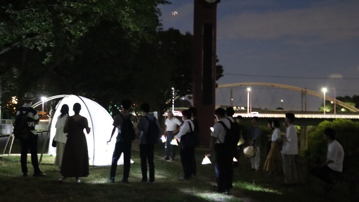 皆さん!初めまして! 私たちは、利根運河シアターナイト実行委員会です。 私たち利根運河シアターナイト実行委員会は、劇的な空間(シアター)を学生と地域が交流を行う場として創出することを目的に、10年程前から東京理科大学の野田キャンパスの建築学生が中心となって活動している団体です。例年様々な活動を利根運河周辺で行いながら、秋頃に開催する祭典(シアターナイト)に向けて制作を行っております。